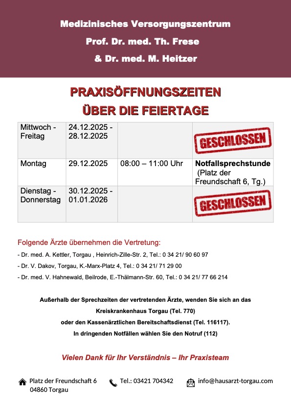 Annahmeschluss ist eine Stunde vor Sprechstundenende!
