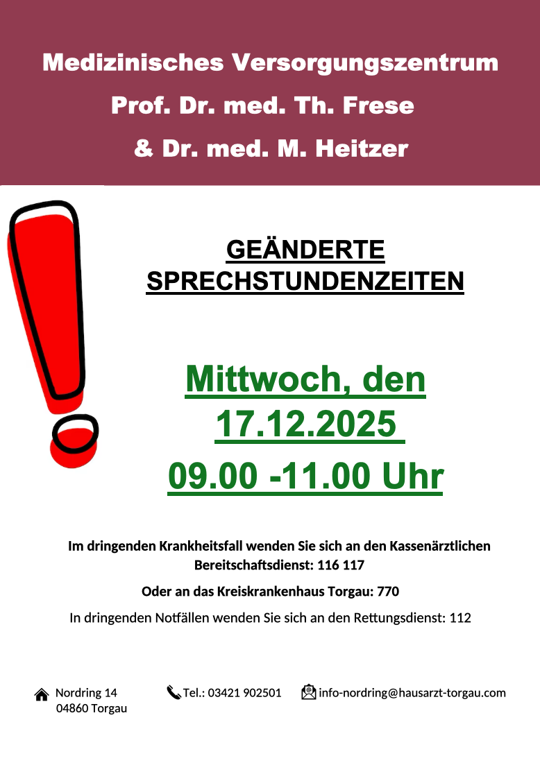 Annahmeschluss eine Stunde vor Sprechstundenende!